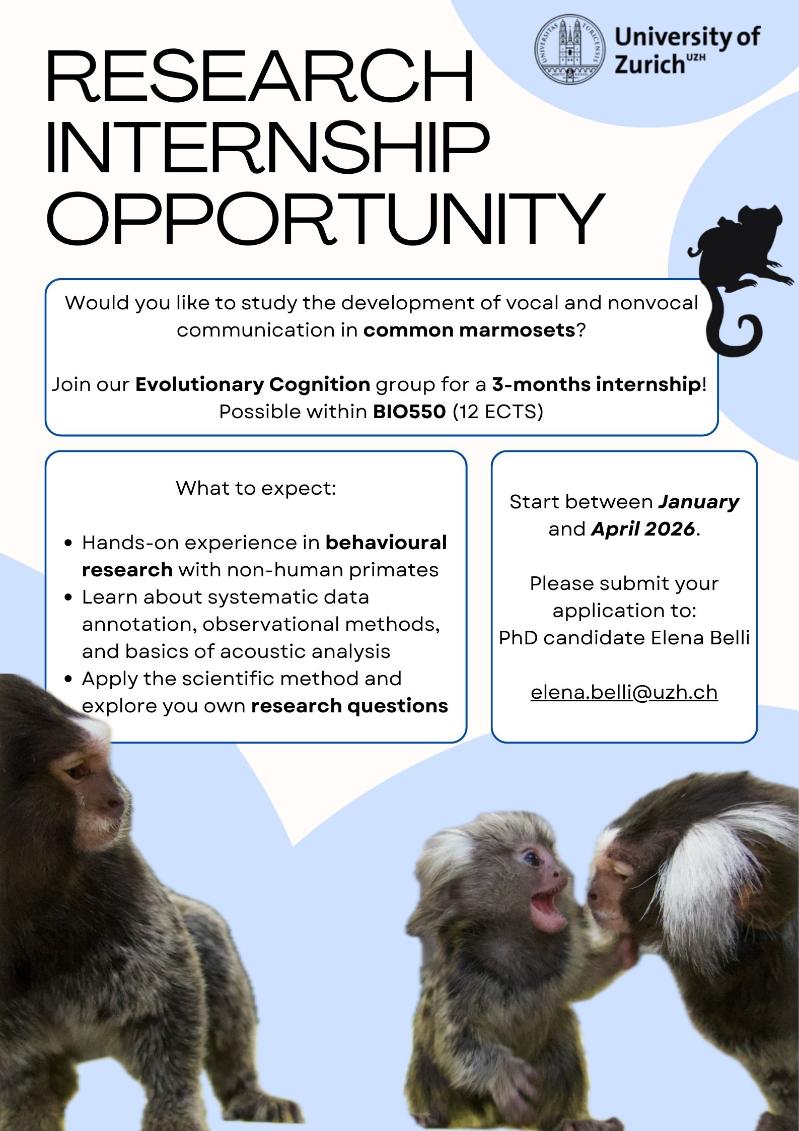 Opportunity for a research internship of 3 months. Bachelor students who plan to enrol in BIO550 Research Internship Anthropology are more than welcome!